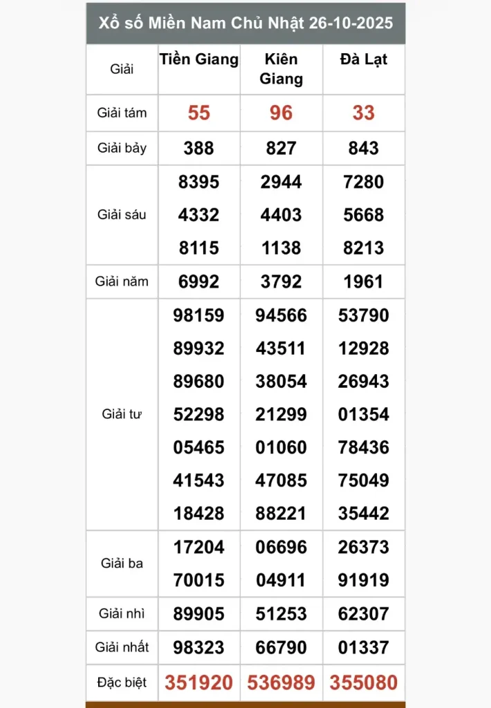 Chốt lô An Giang đặc biệt ngày hôm nay 26/10/2025 như sau: